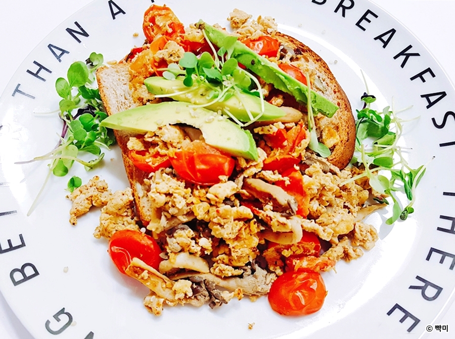 오늘은 다이어트 식단으로 바삭하게 구운 통밀토스트에 토마토 버섯 계란 볶음과 아보카도를 올려서 오픈토스트로 만들어 보았습니다. 좋아하는 채소를 볶아서 토스트 위에 올려주기만 하면 되는 아주 간단한 레시피인데 영양만점 재료들의 조화로운 만남으로 색감까지 너무 예뻤는데요. 힘든 다이어트로 몸과 마음이 지쳐 있다면 따뜻한 차 한잔과 함께 잠시만 나를 위한 맛있고 여유로운 홈 브런치 시간을 가져보아도 좋을 것 같습니다.
