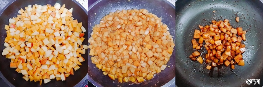 팬에 조려낸 고구마 사과조림은 잼처럼 쫀득한 식감으로