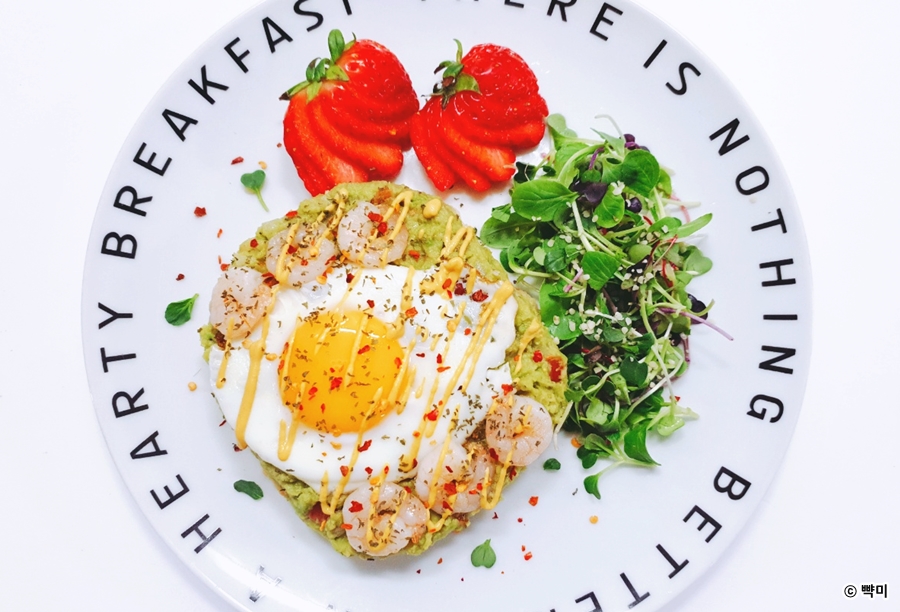안녕하세요! 건강한 다이어트를 지향하는 요리하는 헬시어터 뺙미입니다. 오늘의 다이어트 레시피는 숲 속의 버터라 불리는 아보카도로 스프레드를 만들어 바른 빵 요리입니다. 으깬 아보카도와 다진 채소를 섞어 바르면 고칼로리 스프레드 부럽지 않은 맛 좋은 아보카도 스프레드를 간단하게 만들 수 있는데요. 아삭하고 부드러운 아보카도 스프레드 위에 보들보들한 달걀과 탱글탱글한 새우를 올리고 제로칼로리 머스터드까지 뿌려 환상적인 맛으로 탄생한 새우 아보카도 토스트 만들기 올려봅니다.