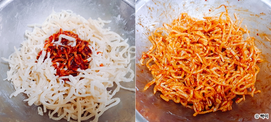3. 양념장 넣어 무치기