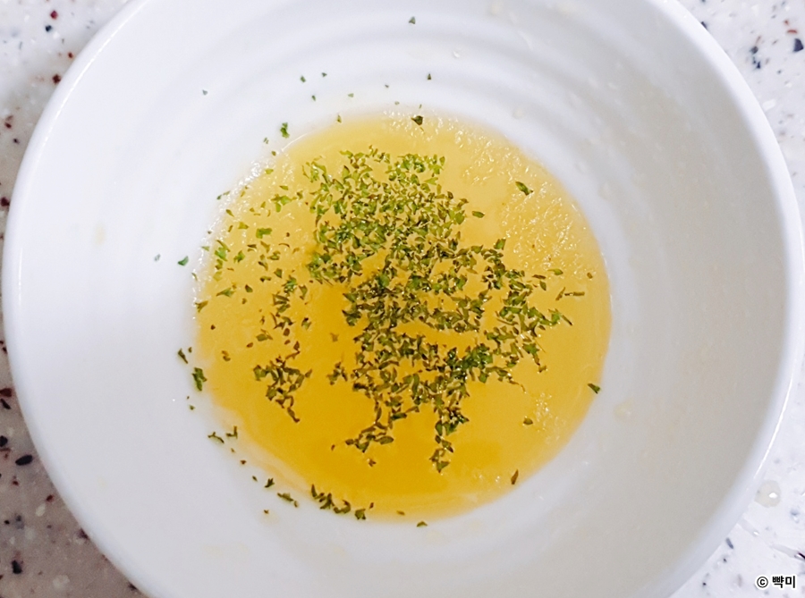 5. 녹인 버터에 소금, 파슬리가루를 넣고 섞어주세요.