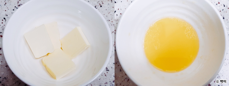 4. 이제 감자구이에 바를 소스를 만들어 볼께요. 그릇에 버터를 담고 전자레인지에서 40~50초 가열해서 녹여주세요.
