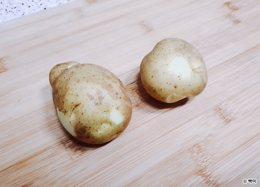 1. 감자는 깨끗이 씻어 싹이 난 곳이나 상한 곳은 도려내 주세요.