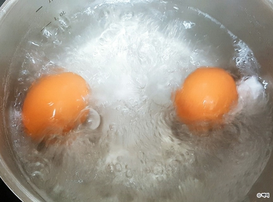 1. 냄비에 물을 담은뒤 소금과 식초를 넣고 달걀을 넣어 10분간 삶아주세요.