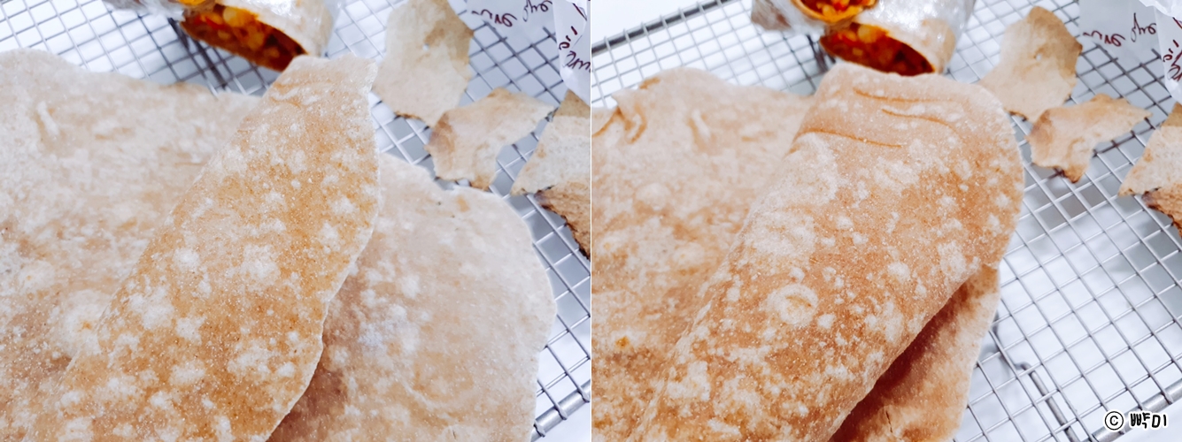 완성된 통밀 또띠아(토르티야)는 흰 밀가루나 다른 첨가물이 들어가지 않은 100% 통밀가루로 직접 만들었기 때문에 건강한 느낌이 들었는데요. 또띠아말이를 만들어서 가족들과 함께 쫄깃한 식감으로 맛있게 먹을수 있었답니다. 만약 반죽을 너무 오랫동안 구워서 실패한 또띠아가 있다면 팬에 좀 더 오래 구워 나쵸칩처럼 소스에 찍어 먹어주면 맛있습니다.