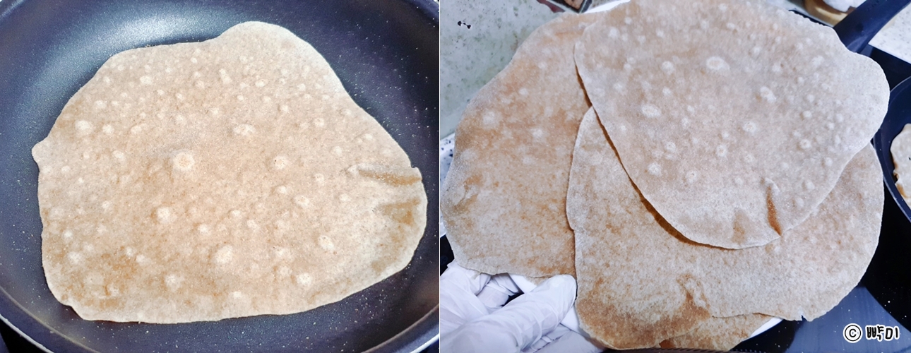 * 통밀또띠아를 처음 만들었을때 두께와 크기 실패를 맛본후 지금의 적당한 두께와 사이즈를 찾았습니다. 팬의 크기는 집마다 차이가 있으니 참고해서 만들어 주세요.