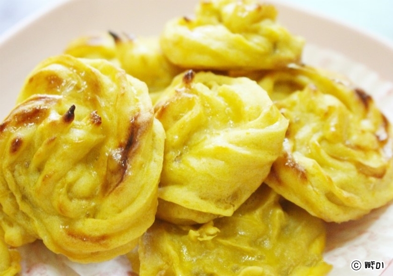 고구마2개(200그램), 통밀가루 4스푼, 우유 6스푼, 생크림 6스푼, 계란 노른자 1개